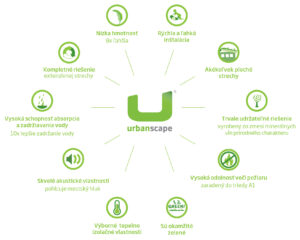 Systém Urbanscape je výbornou alternatívou k zastavanej zelenej ploche, pretože zadržanou vlhkosťou zlepšuje klímu v ovzduší a znižuje hladinu CO2.