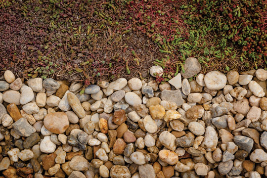 - Plochu medzi okrajom strechy a vegetačným krytom Urbanscape z rozličných druhov rozchodníka vysypte kamenivom frakcie 16 až 32 mm.